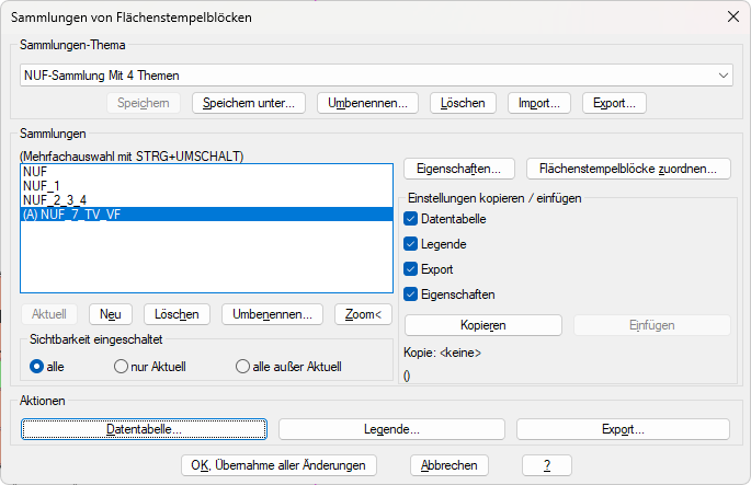 Es öffnet sich das Dialogfenster "Sammlung - Zugeordnete Flächenstempelblöcke", die selektierte Eigenschaft kann geändert werden.