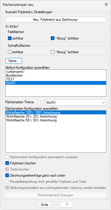 Anmerkung: der Name wird auch als Name für den Flächenstempelblock verwendet, daher muss er den Konventionen von AutoCAD / BricsCAD für Blocknamen entsprechen.
