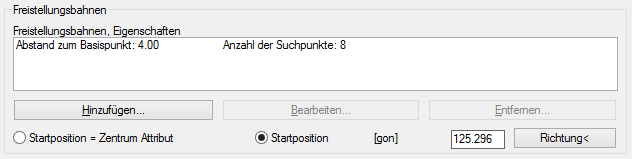 Sobald Sie eine Freistellungsbahn in der Liste ausgewählt haben, können Sie den Abstand vom Basispunkt und die Anzahl der Suchpunkte bearbeiten.