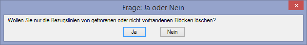 Sie können vorhandene Bezugslinien auf dem aktuell eingestellten Bezugslinienlayer löschen. Entweder werden alle auszuwählenden Bezugslinien gelöscht oder nur die Bezugslinien, deren Blöcke gefroren oder nicht mehr vorhanden sind.