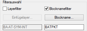 EIN: Es wird für die Blockauswahl ein Filter für den Einfügelayer verwendet.
